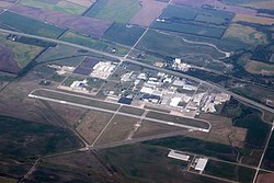 An airport, jointly owned by Arkansas City and Winfield, was under construction in April 1942 when the United States Army Air Forces indicated a need for a training airfield by the Army Air Forces Flying Training Command, Gulf Coast Training Center. Strother Army Airfield was rushed to completion with the first class of cadets scheduled to arrive for basic training in Vultee BT-13 Valiant aircraft on December 14, 1942.